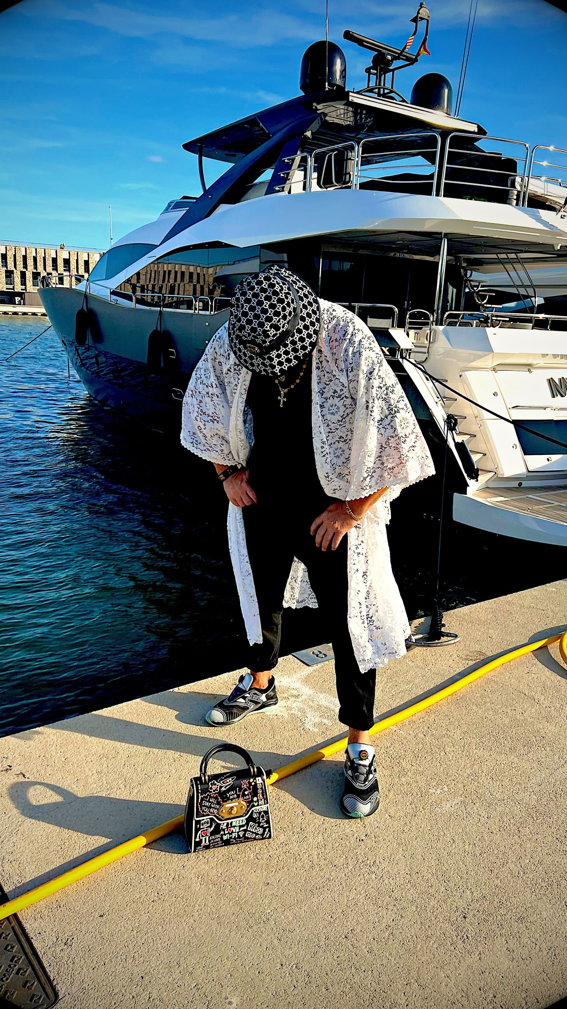Silver color chain necklace with crown pendant and decorative maxi links engraved with the letters DG