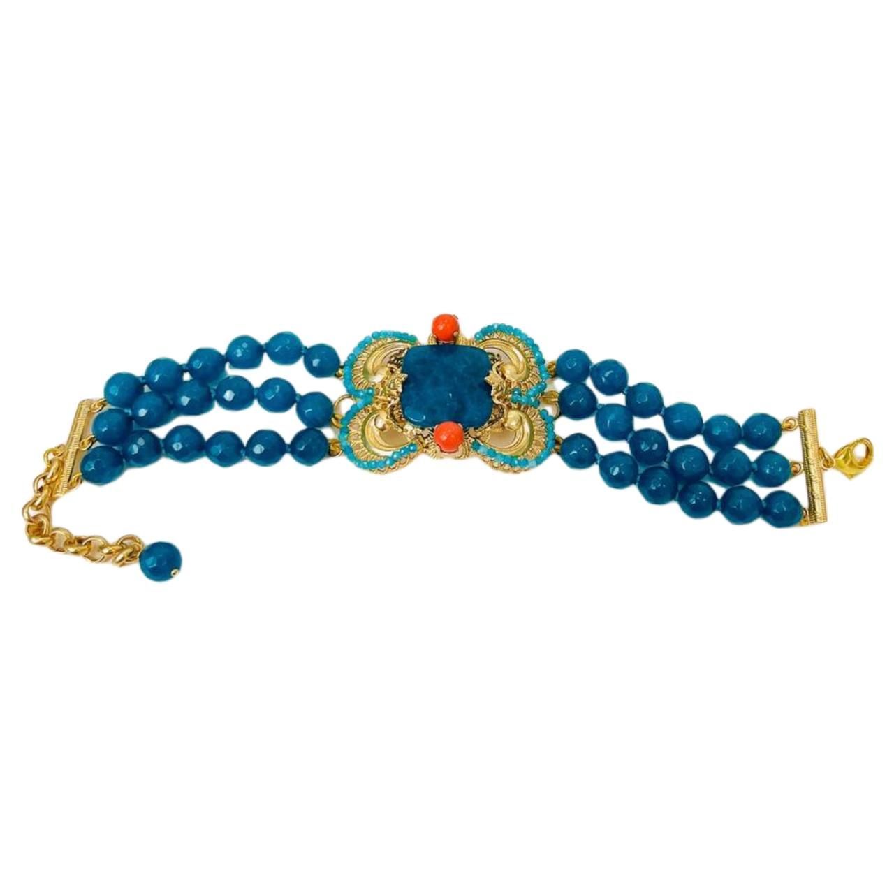 Individual bracelet with natural stones, made of brass with electroplated gold